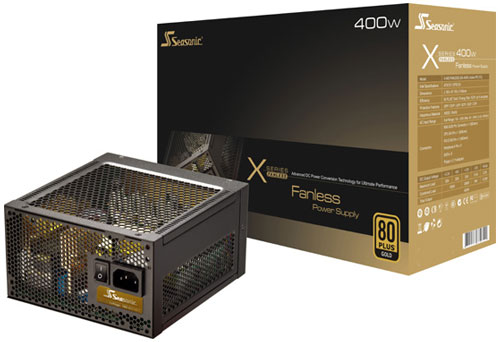 Известный тайваньский производитель качественных и дорогих блоков питания Seasonic пополнил весьма ограниченный ассортимент представленных на IT-рынке безвентиляторных (и соответственно практически бесшумных) источников питания моделями X-Series Fanless мощностью 400 и 460 ватт. По итогам предварительных тестов новинки получили «золотой» статус от организации 80 Plus, означающий КПД порядка 90%.